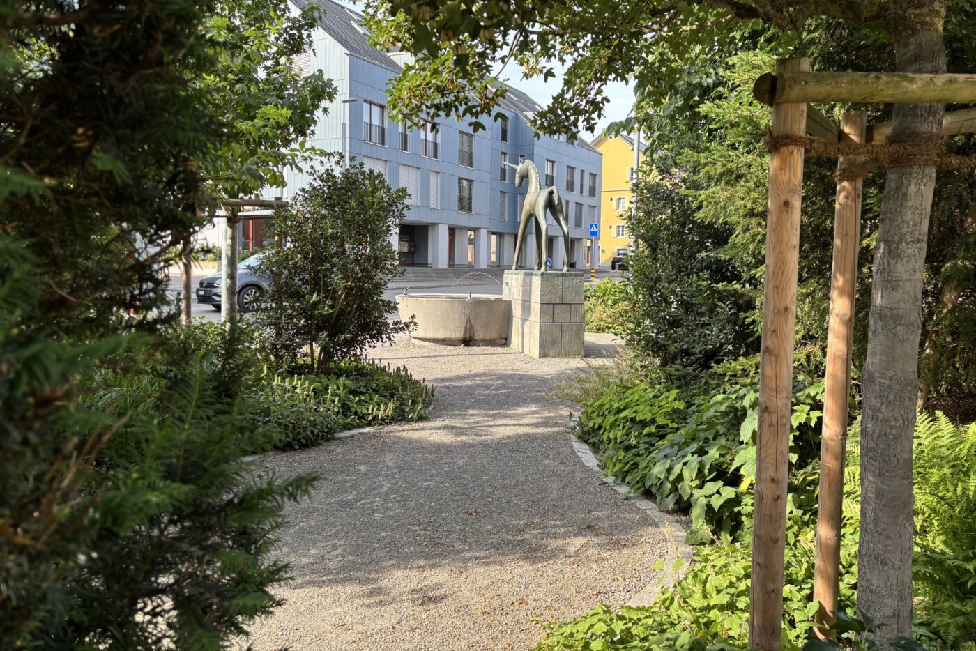 Um die Linde wurde die Fläche grossflächig entsiegelt. Nach Schwammstadtprinzip wurde eine riesige Baumgrube angelegt und mit Zukunftsbäumen sowie einheimischen Arten neu bepflanzt.