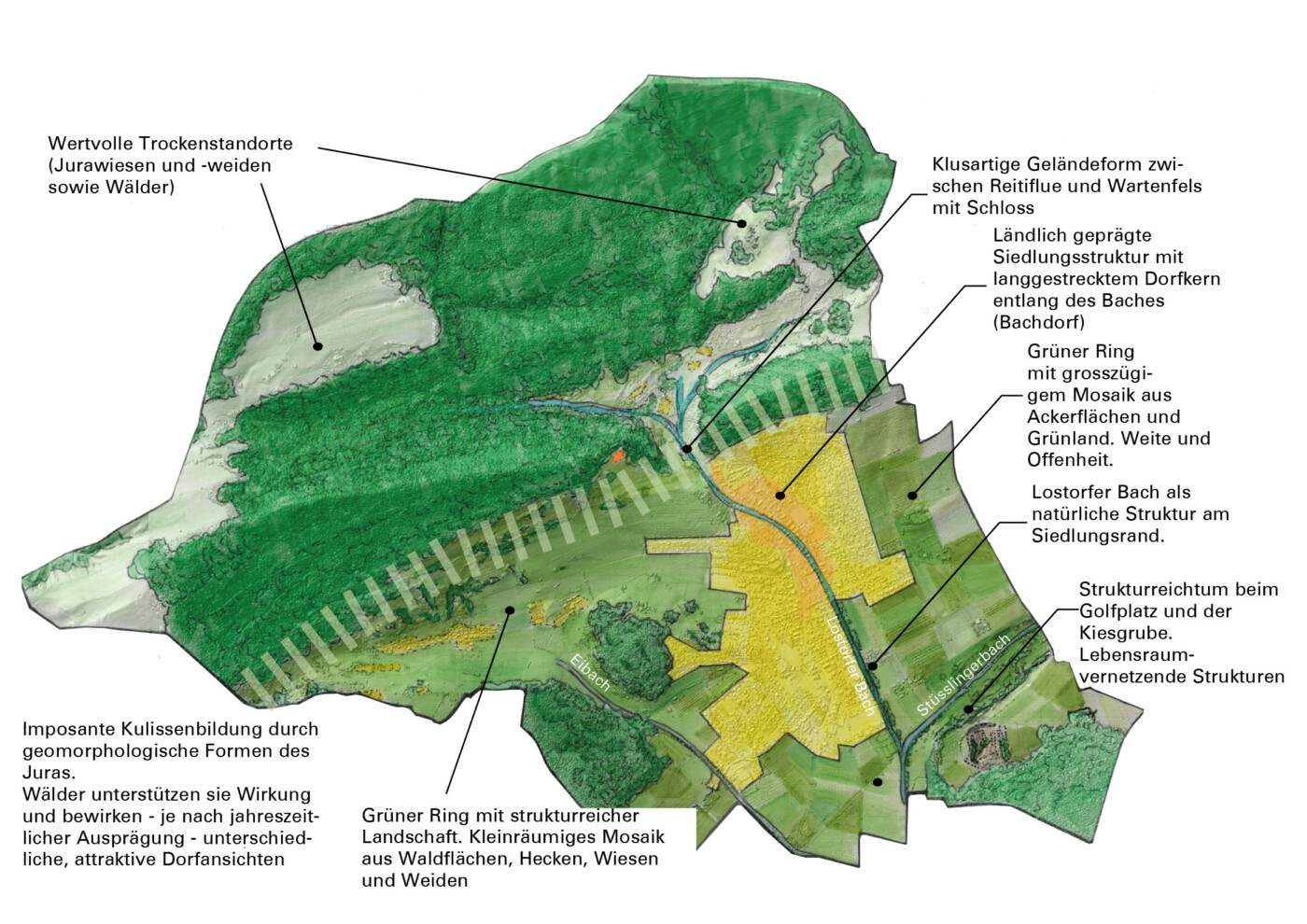 Vor der anstehenden Ortsplanungsrevision will die Gemeinde Lostorf (SO) ihre räumlichen Stärken und Schwächen durchleuchten. Die für die Gemeinde kostenlose Landschaftsberatung hat aufgezeigt, welche Fragen und Instrumente am Anfang einer hohen Lebensqualität stehen. Wichtig ist dabei die Mitwirkung: Die Gemeinde möchte die Ortschaft gemeinsam mit der Bevölkerung attraktiver gestalten.