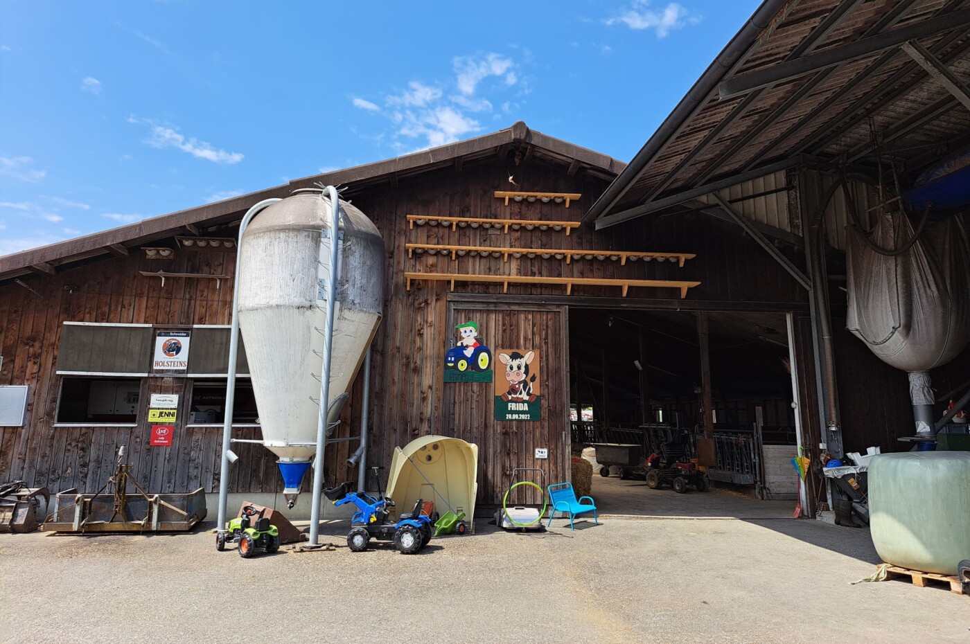 Die neuen Nisthilfen am benachbarten Bauernhof werden bereits aktiv beflogen.