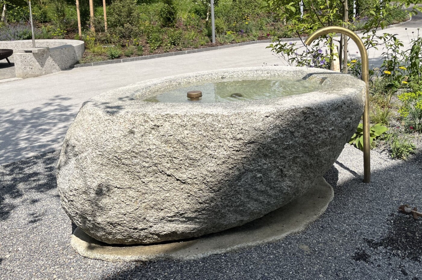 Der Brunnen nimmt dabei eine besondere Rolle ein. Die Verwandlung des beim Bau der Süd-West-Umfahrung aufgefundenen Findlings “Sinser Stein” zum Brunnen war nicht vorgezeichnet und ist gelungen.
