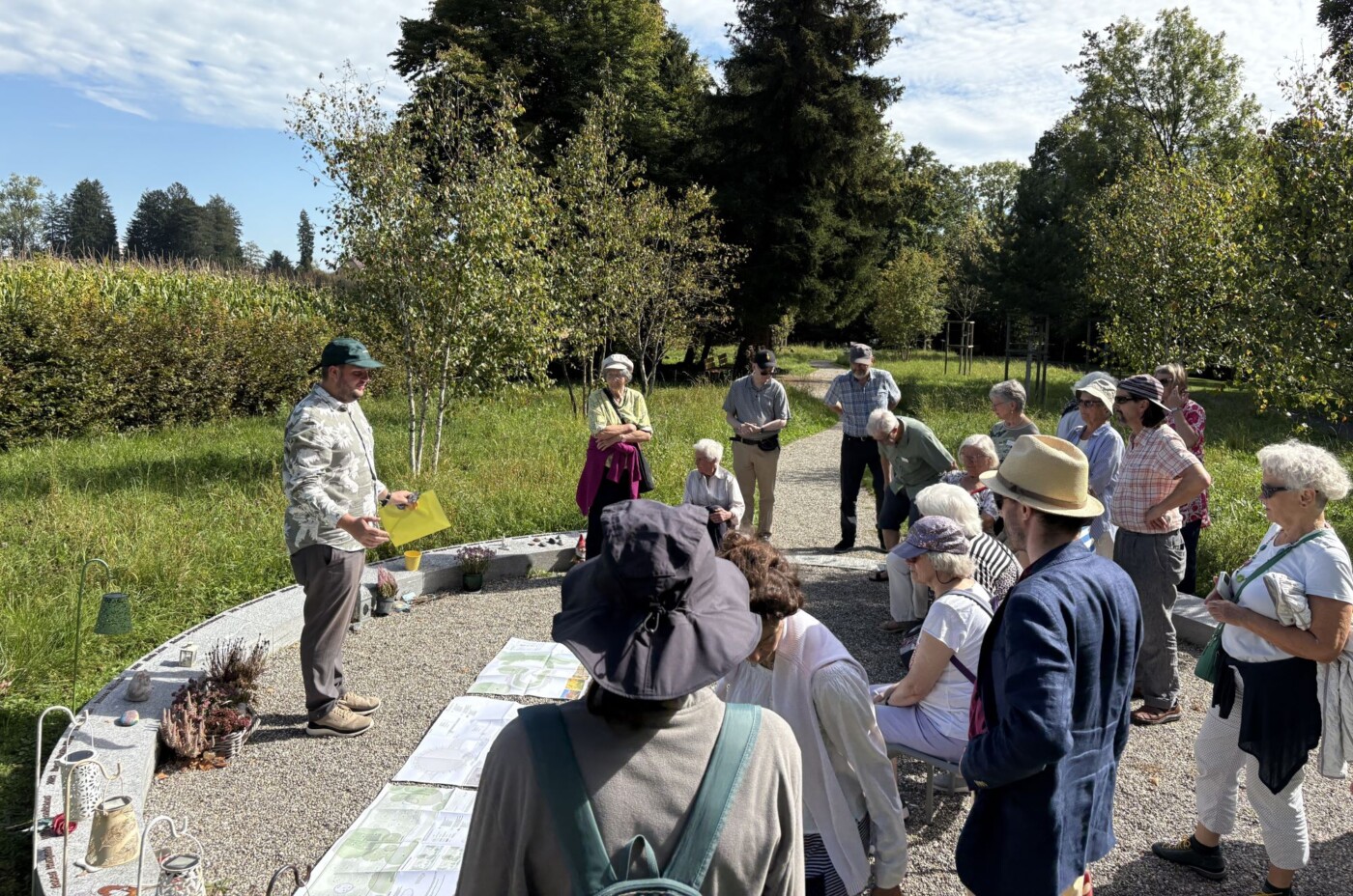Anlässlich des Tags des Friedhofs 2025 führte Sven Reithel, SKK, an einem Rundgang zu verschiedenen Schlüsselstellen im Friedhofareal. Er erläuterte den Bestand und die mögliche Entwicklung zum Naherholungs- und Naturraum. Grundlage ist der von SKK Landschaftsarchitekten erarbeitete Masterplan zur Entwicklung des Friedhofs. Einzelne Vorhaben sind bereits realisiert. Dazu zählt der Friedhain, wo Verstorbene an einem Baum in der Blumenwiese ihre letzte Ruhe finden können.