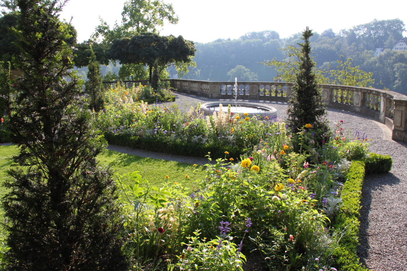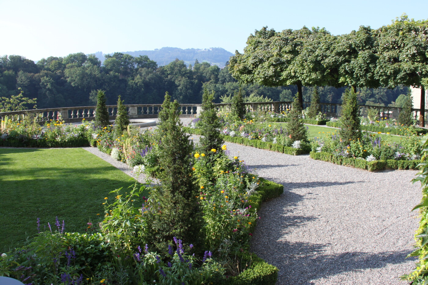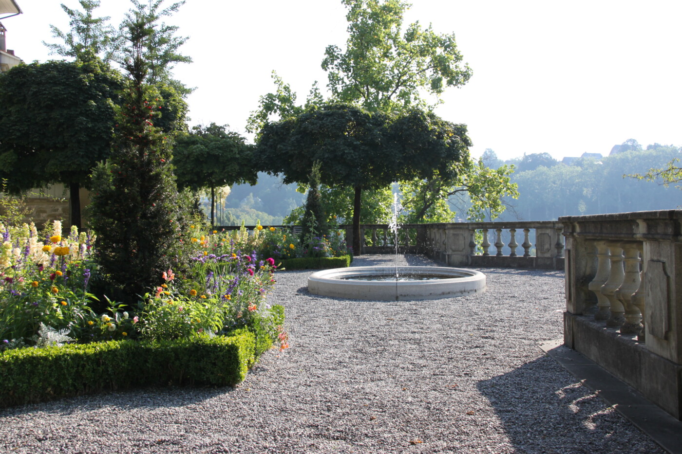 2012-13 erarbeitete SKK Landschaftsarchitekten das Sanierungsprojekt der Gartenterrasse und leitete die Umsetzung. In den gemeinsam mit ProSpecieRara neu konzipierten Wechselflorrabatten blühen seitdem historische Pflanzensorten und geschnittene Eibenkegel geben einen räumlichen Akzent.