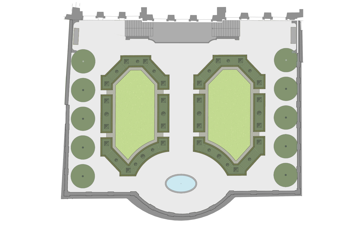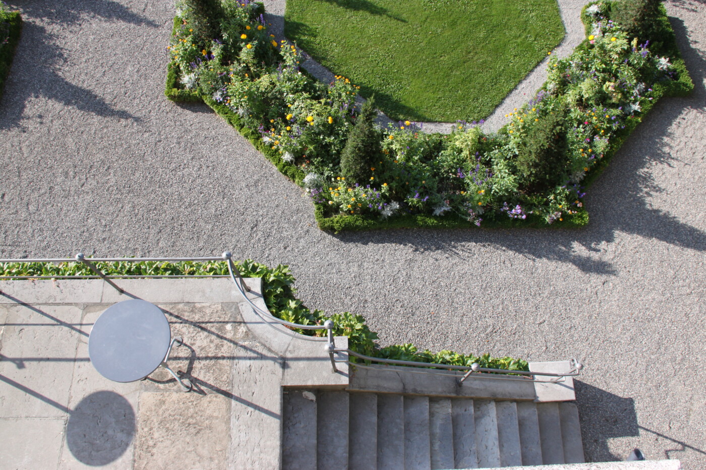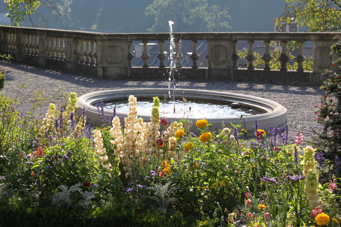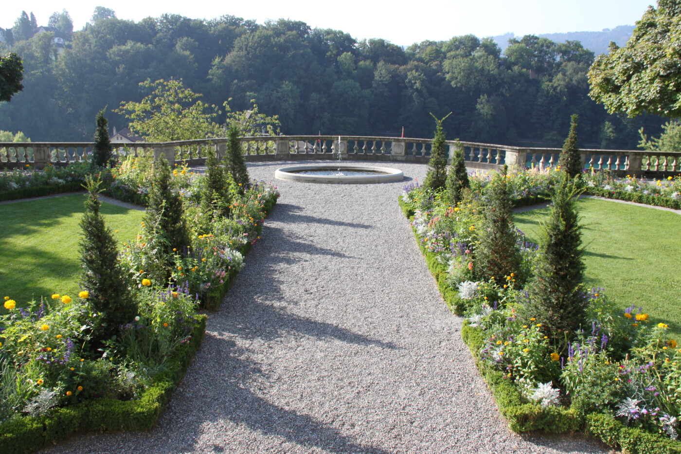 2012-13 erarbeitete SKK Landschaftsarchitekten das Sanierungsprojekt der Gartenterrasse und leitete die Umsetzung. In den gemeinsam mit ProSpecieRara neu konzipierten Wechselflorrabatten blühen seitdem historische Pflanzensorten und geschnittene Eibenkegel geben einen räumlichen Akzent.