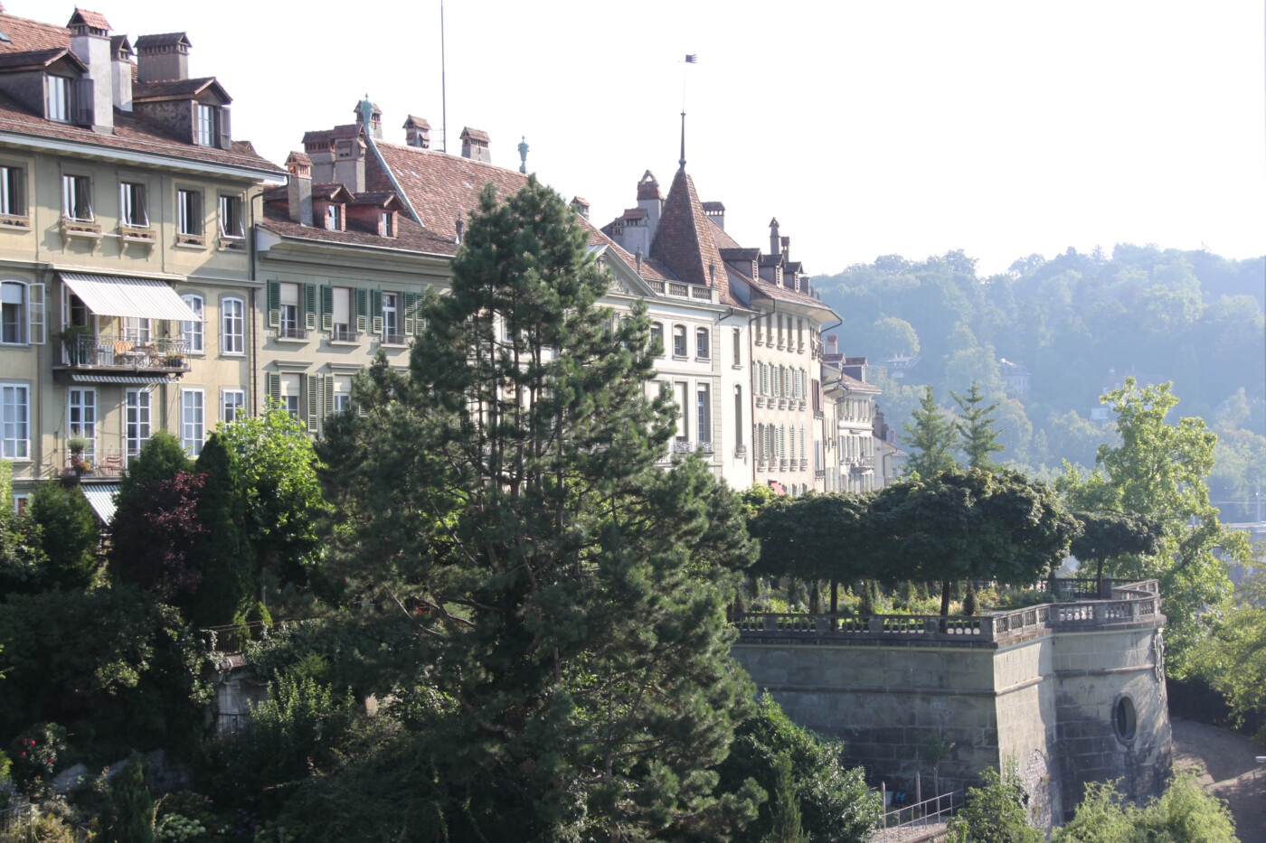 Der Erlacherhof, erbaut 1745-57 von Hieronymus von Erlach, ist das herausragenste Privatbauwerk in der Berner Altstadt. Die spätbarocke Anlage folgt dem Prinzip des „Hotel entre cour et jardin“, eines Stadtpalais zwischen Ehrenhof und Garten. Während der Ehrenhof vor dem Gebäude zur Strasse hin orientiert ist, liegt der Garten auf der Rückseite des Gebäudes auf einer von hohen Stützmauern getragenen Terrasse. Von dieser eröffnen sich spektakuläre Ausblicke auf Aare und Münsterplattform.