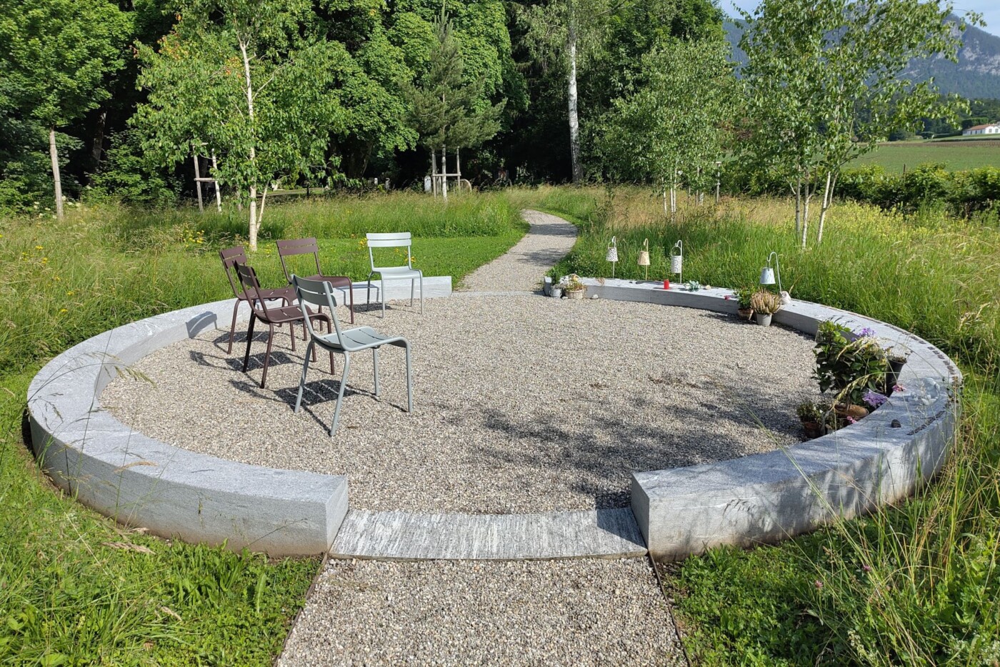Das Konzept lässt sich gut von einem klassischen Bestattungswald differenzieren und bildet ein attraktives Grabangebot im Sinne eines Ruhehains mit Blumenwiese, welches auch thematisch den Bezug zum angrenzenden Landschaftsraum einbezieht.