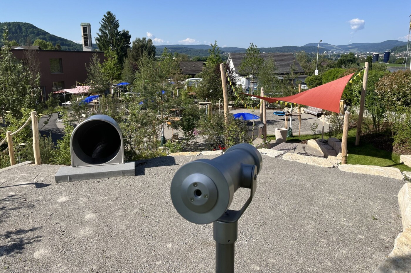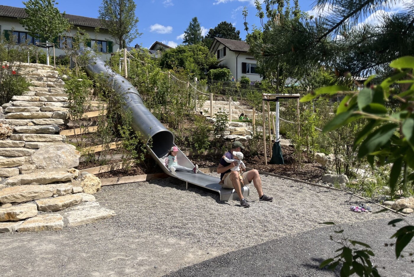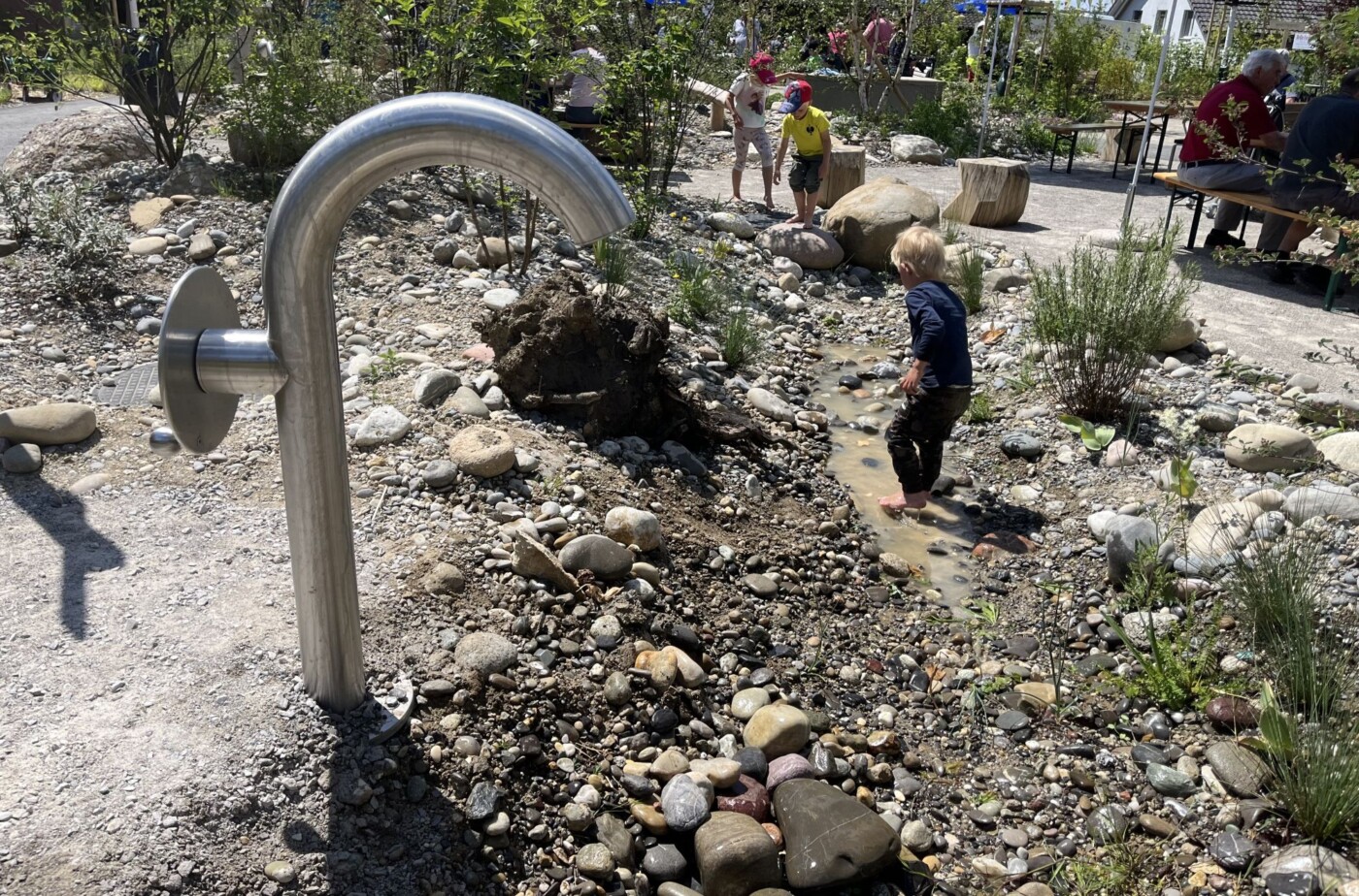 Eine abwechslungsreiche und kreative Gestaltung fördert menschliche Begegnungen und lädt zum Austausch zwischen den Generationen ein. Die einzelnen Bereiche des Generationengartens wurden nach bekannten Flurnamen benannt. Für die geographische Einbettung in die nahe Umgebung wurden grosse Vogelkirschen gepflanzt. Sie spenden natürlichen Schatten und verstärken die ländliche Atmosphäre. Der Erlebnispfad, welcher sich über die gesamte Anlage erstreckt, ermöglicht es den Kindern noch mehr zu erleben und entdecken. Ein Gemeinschaftsplatz mit einem Mühlespiel, ein Gemeinschaftsgarten sowie ein Naschgarten fördern das altersübergreifende Zusammensein. Die rollstuhlgerechte Wegführung und die Sitzmöglichkeiten entlang des Weges ermöglichen es den bewohnenden des Seniorenzentrums, sich unbeschwert zu bewegen.