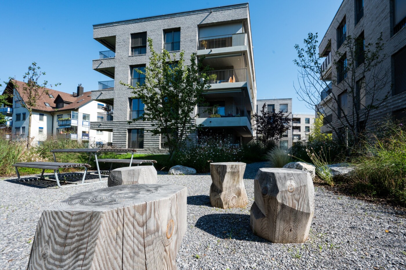 Das Neubauquartier Lindenhof mit 7 Baukörpern liegt zentral direkt ausserhalb der Kernzone Kempten. Hier treffen unterschiedliche Generationen aufeinander und bilden eine neue Gemeinschaft.
