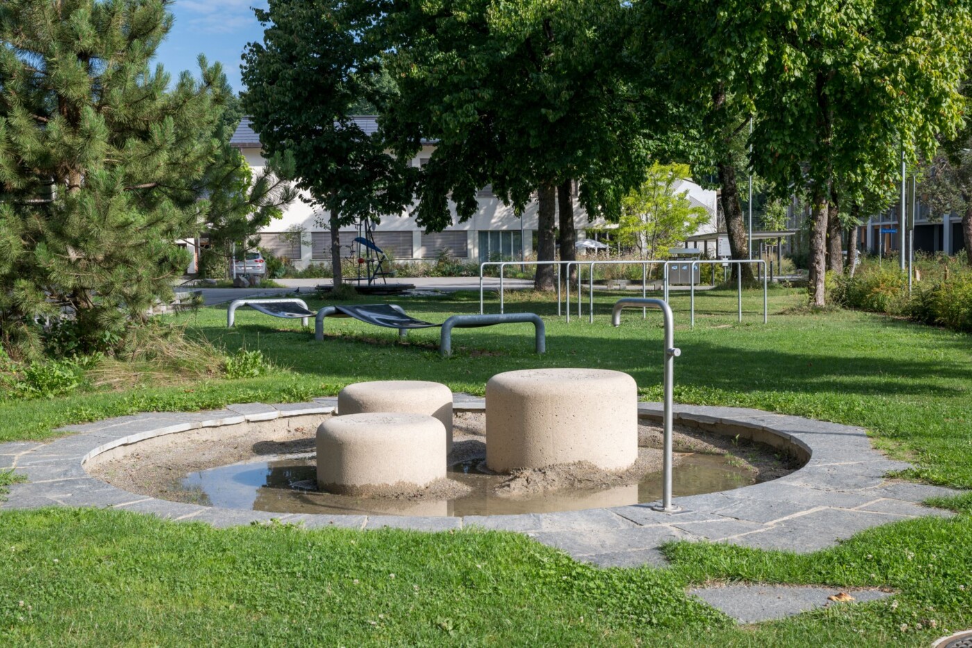Ein subtiler Eingriff zwischen Gartendenkmalpflege und Anpassung an neue Normen und Anforderungen, welcher aktuelle Themen wie Biodiversität, Hitzeminderung und integrale Lernumgebungen umfasst.
