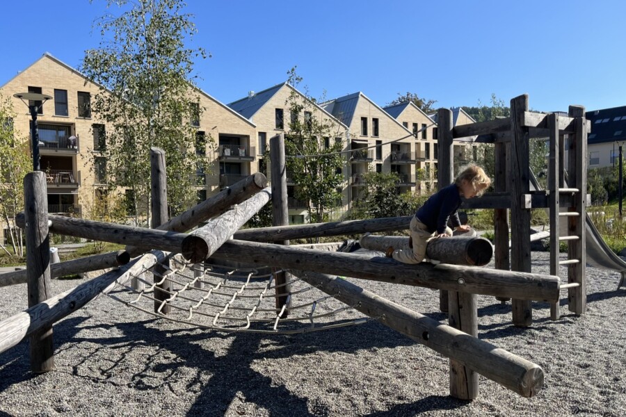 Einem Kokon gleich wird das Areal der Wohnüberbauung von einer grünen Spange gefasst